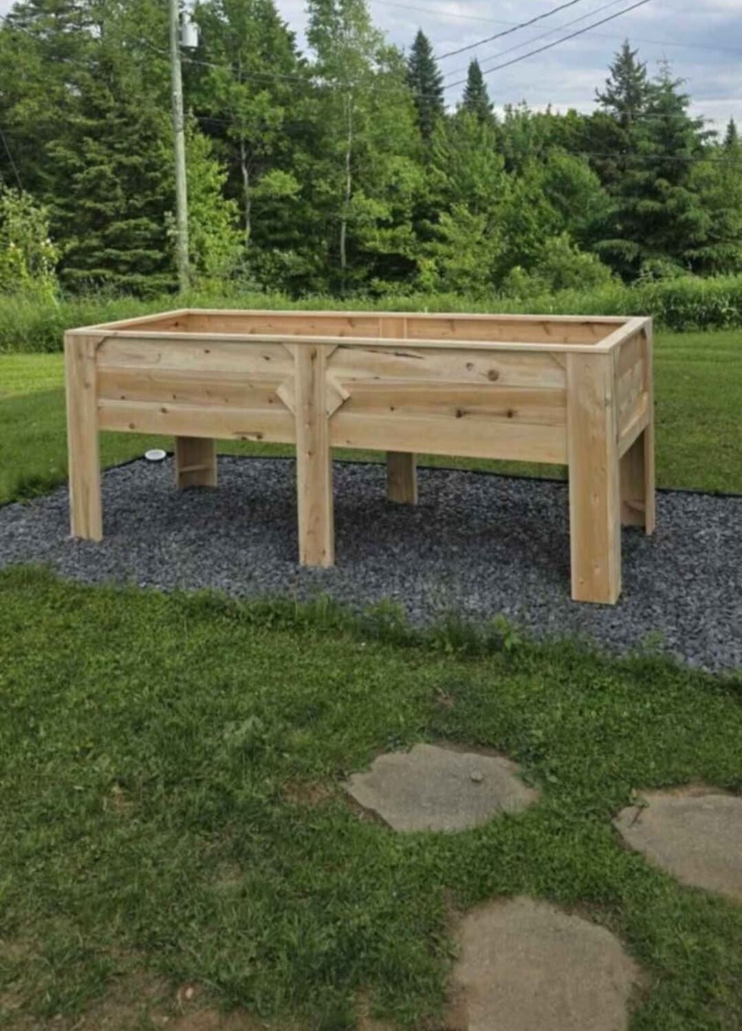Nos bacs au sol qu'il soit en épinettes ou en cèdre blanc, vous offrent la possibilités de jardiner a même vôtre sol vous offrent ainsi un aménagement propre et agréables à regarder. Ce type de bacs offrent à vos légumes toutes l'espaces requis pour une croissance optimal.
